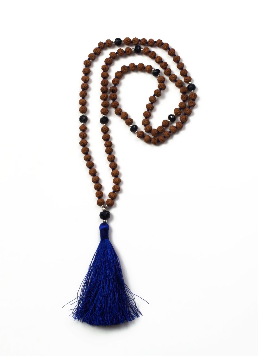 Чётки из рудракши с сапфиром, 108 бусин / Индия