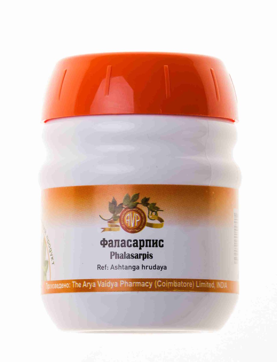 Пхаласарпис гхритам (Пхаласарпи грита, Пхала грита), PHALASARPIS GHRITAM Пхаласарпис гхритам - аюрведический многокомпонентный лекарственный препарат на основе 17 лекарственных трав и растений, приготовленных по традиционной рецептуре в топлёном коровьем масле (Гхи) и молоке. Является мощным тоником для женской и мужской репродуктивной системы. В течение многих веков используется в Аюрведе для лечения женского и мужского бесплодия, при угрозе выкидыша, заболеваниях матки, воспалительных процессах в органах малого таза и мочеполовой системе, при нарушениях менструального цикла, общей слабости и истощении организма, при сниженном маточном тонусе и других гинекологических заболеваниях. Пхаласарпис гхритам укрепляет общий иммунитет, повышает сопротивляемость организма к неблагоприятным условиям окружающей среды, выравнивает гормональный фон как у мужчин, так и у женщин, улучшает работу эндокринной системы, оказывает омолаживающее воздействие на органы репродуктивной системы, поддерживая их в тонусе. Одно из лучших средств для подготовки к зачатию детей. Часто назначается детям и подросткам в период полового созревания, так как ускоряет все анаболические процессы в организме. Лечебный эффект лекарственных трав, входящих в состав препарата многократного усиливается за счёт присутствия в составе топлёного масла Гхи, которое легко усваивается организмом и является наилучшим переносчиком (анупана) лекарственных компонентов ко всем тканям и внутренним органам тела. Кроме того, Гхи способствует расщеплению и выведению из организма жирорастворимых токсинов и шлаков, повышая усвояемость активных ингредиентов в составе. Известно также, что при длительном хранении аюрведические препараты в виде гхритам не только не теряют своих ценных свойств, но и накапливают их. Аюрведическая характеристика: успокаивает все три доши - Вату, Питту и Капху. Рецептура данного препарата и сфера его применения описана в аюрведическом трактате «Аштанга-хридая-самхите» («Уттарастхана», 34/63-67).