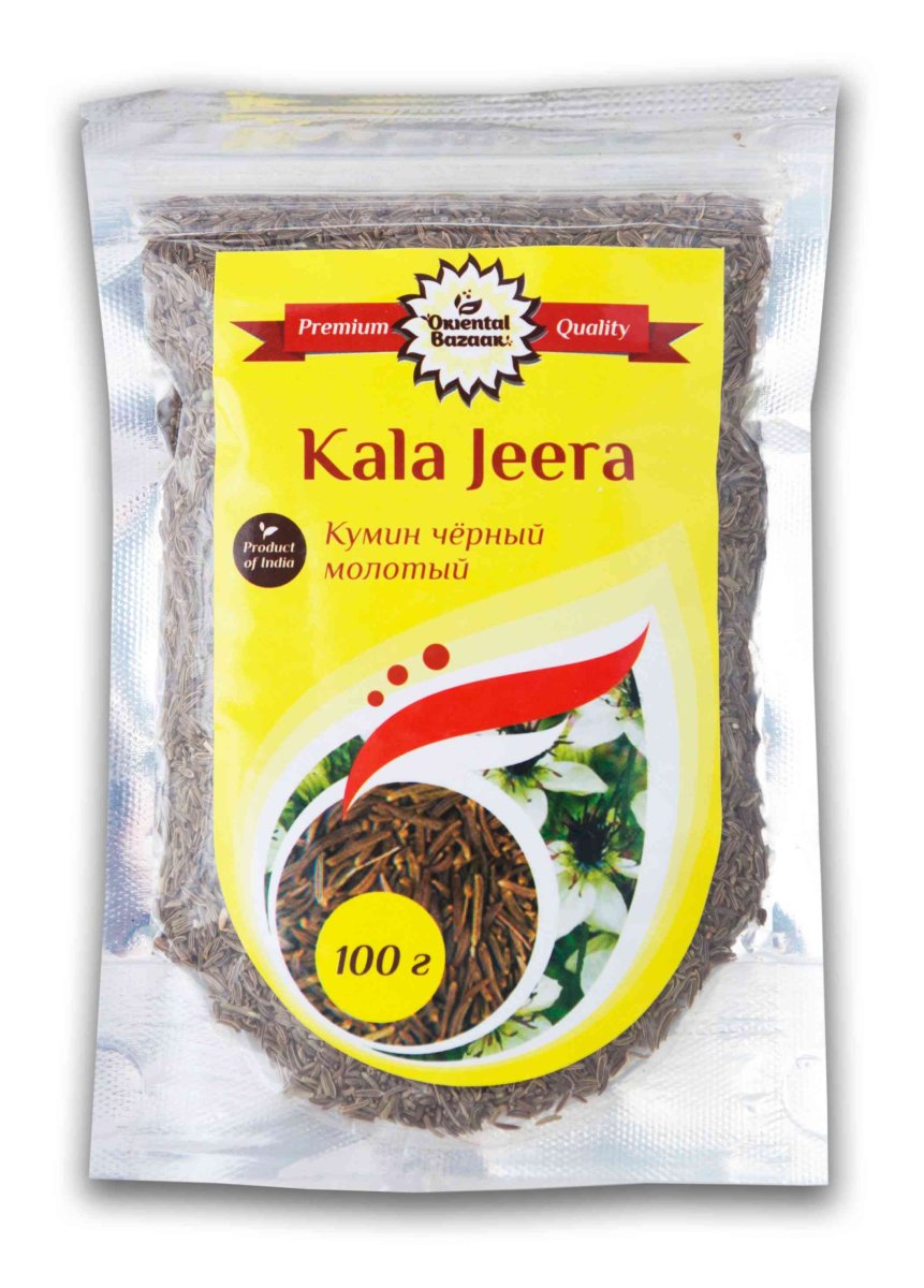 Чёрный кумин (кала джира) - Cuminum nigrum - темнее и мельче, чем белый, имеет более горький вкус и острый запах. Он не требует такого длительного обжаривания, как семена белого кумина. Чёрный кумин - кала джира (зира) - одно-двухлетнее травянистое растение высотой до 30 см, предпочитающее расти в тропиках и субтропиках. Листья очередные, нижние, цветки белые, желтые или красные, собраны в зонтики. Семена продолговатые, длиной 6 мм, шириной 1,5 мм, содержат 2,4 - 4 % эфирного масла, до 16 % камеди. Зира собирается из ”зонтиков” так же, как укроп, незрелой и досушивается. Урожай собирается примерно через 4 месяца после посева. Семена чёрного кумина (индийское название кала джира) - Cuminum nigrum - продаются на рынках, где они известны под названием ”зира”. Чёрный кумин темнее и мельче, чем белый, имеет более горький вкус и острый запах. Это небольшие, зеленовато-серые или тёмно-серые семена с заострёнными концами, аромат которых раскрывается, когда их обжаривают на сухой сковородке или растирают. Существует несколько видов зиры, но их аромат отличается друг от друга не кардинально, за исключением растущей в Индии и Афганистане чёрной горной зиры с более нежным ”подкопченным” запахом. Ежегодно производится около 35000 тонн кумина (зиры). "В горячие блюда кумин добавляется в самом начале приготовления (если семена не обжарены) или за 10-15 минут до готовности. Кумин лучше отдаёт свой вкус и аромат блюду, если семена немного обжарить на сухой сковороде или в масле перед закладкой основных ингредиентов. На сухой сковороде обжаривайте семена, пока они немного не потемнеют и не начнут распространять специфический аромат. Благодаря своеобразному пряному вкусу и аромату зира занимает прочное место в кулинарии и может использоваться во многих блюдах. Кумин можно применять практически во всех первых и вторых горячих блюдах. Отлично сочетается зира вместе с кориандром, куркумой и барбарисом в плове. Семена кумина кладут в жареные, печёные и тушёные овощи, в соусы, чатни и супы. Молотым кумином можно приправлять салаты, закуски, кисломолочные продукты, бутерброды. Поскольку зира успокаивает процессы брожения в желудочно-кишечном тракте и снимает ощущение тяжести при переедании, целесообразно добавлять его в сложные для пищеварения блюда из бобовых, картофель и капусту. Пряность используется для ароматизации хлебных и кондитерских изделий. Благодаря своим антимикробным свойствам кумин является важным компонентом при засолке капусты, огурцов, томатов."