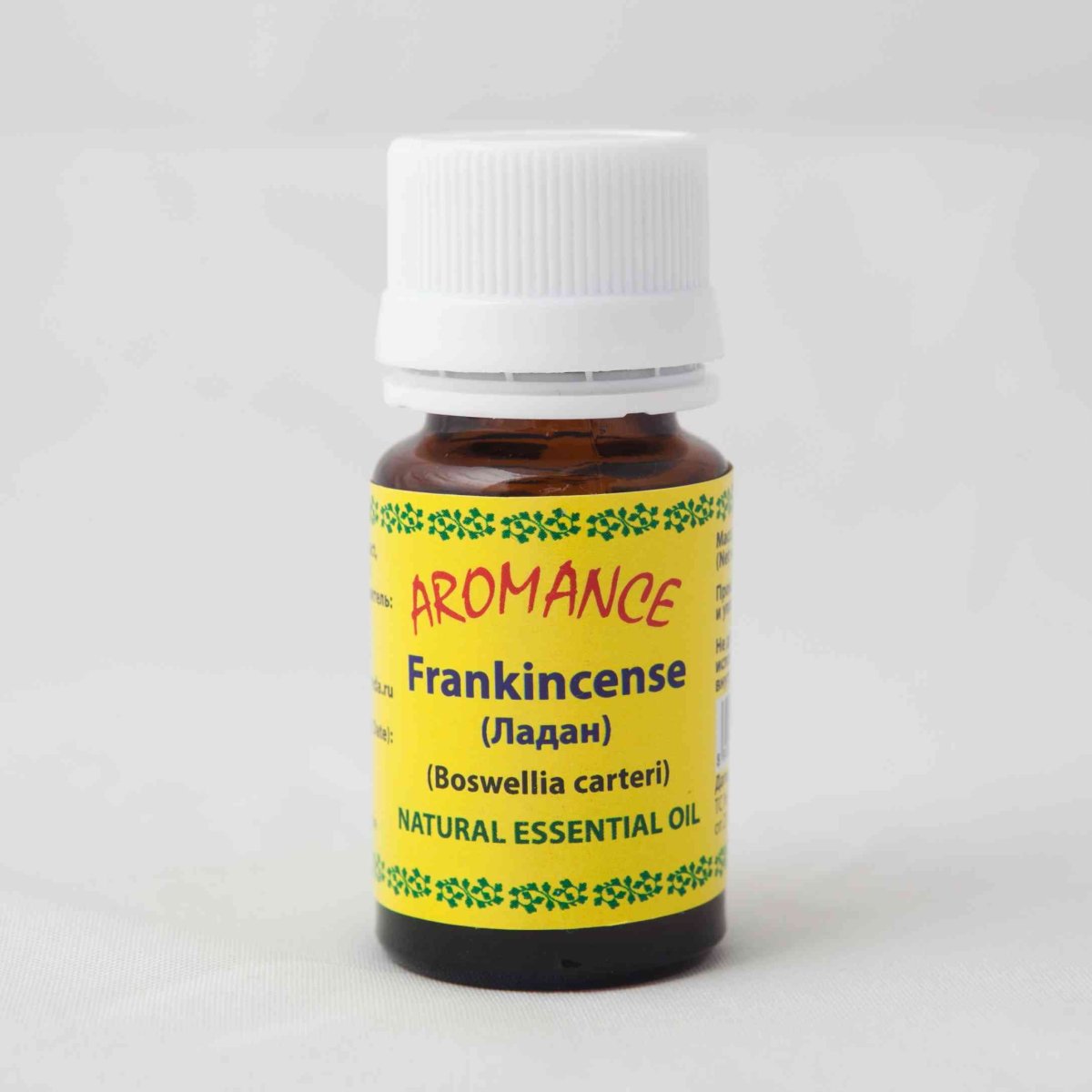 Ладан, часто известный как olibanum, представляет собой смолу ароматической камеди, полученную из деревьев рода Boswellia. Ладан использовался с древних времен в религиозных обрядах. Солдаты лечились ладаном. Амбруаз Пейн, хирург шестнадцатого века, отметил, что он останавливает кровотечение из ран и помогает быстро формировать рубцовую ткань. Современные исследования зафиксировали его эффективность в лечении рака кожи. Говорят, что он успокаивающий и хороший антисептик. Эффективен при вдыхании при катаральных выделениях и заложенности дыхательных путей. Добавьте 2 капли масла в миску с горячей водой и вдыхайте в течение 7 минут, накрыв голову полотенцем. Помимо ароматерапии, используется для укрепления волос. Для этого нужно добавить 3-4 капли масла в шампунь. При заболеваниях суставов, добавьте несколько капель в массажное масло, крем или любое базовое масло для массажа, можно также делать компрессы.