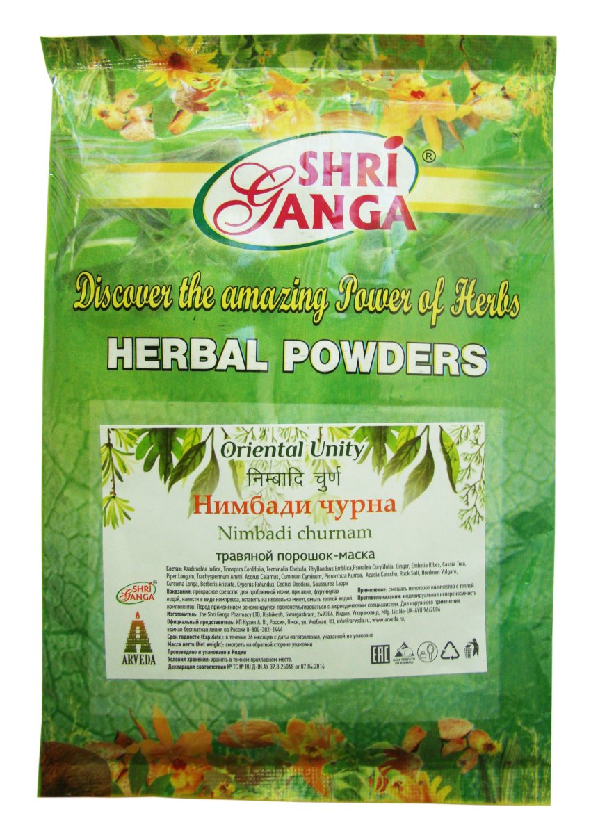 Свойства: Нимбади чурна/ Nimbadi choornam обладает противовоспалительным, рассасывающим действием, имеет антибактериальную активность. Влияние на Доши: Нимбади чурна/ Nimbadi choornam применяется в Индии много веков. Она производится путем смешивания порошков мощных лекарственных трав, ее ингредиенты полезны в установлении баланса всех трех дош - Ваты, Питты, Капхи.