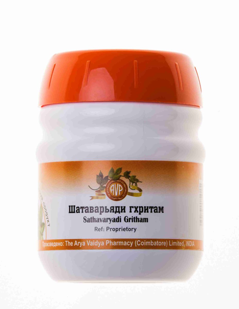 Шатаварьяди гхритам (Шатаварьяди грита, Шатавари гритам), SATHAVARYADI GHRITAM 200 GM Шатаварьяди гхритам (Шатавари гритам) - классический аюрведический препарат, основным активным ингредиентом которого является знаменитое лекарственное растение Шатавари (Asparagus racemosus), приготовленное в сочетании с более чем 20-ю целебными растительными компонентами по традиционным рецептурам с добавлением топлёного коровьего масла (Гхи), молока, мёда и тростникового сахара (гур). Является одним из самых мощных и эффективных тоников для мужской и женской репродуктивной систем. Используется в лечении заболеваний мочевыводящих путей (болезненном и затруднённом мочеиспускании, гонорее, мочекаменной болезни и др.), женского и мужского бесплодия. Является натуральным природным афродизиаком, улучшает работу сердечно-сосудистой системы и головного мозга, устраняет воспалительные процессы в органах малого таза. Нормализует работу женской гормональной системы, в том числе, в период менопаузы. Стимулирует выработку молока. Питает репродуктивные ткани (шукра-дхату) у мужчин и женщин, усиливая сперматогенез и улучшая качество семени и яйцеклеток, благодаря чему часто назначается парам, планирующим зачатие детей. Гхритам - одна из форм аюрведических препаратов, которая готовится по специальным технологиям, обеспечивающим максимальную и бережную экстракцию целебных компонентов из растений. Быстродействие и эффективность Шатаварьяди гхритам основано на ряде уникальных свойств топлёного коровьего масла (Гхи), молока и мёда. Во-первых, они выступают в качестве «проводников» для целебных компонентов растений, обеспечивая их сохранность и быструю доставку к самым глубоким тканям и внутренним органам. Во-вторых, обеспечивают глубокое питание, размягчение тканей и промасливание организма, повышая его восприимчивость к лекарственным компонентам. Кроме того, Гхи - является одним из лучших средств для растворения и выведения из тела жирорастворимых токсинов и шлаков (амы). Аюрведическая характеристика: уравновешивает Вата и Питта-доши, а потому используется в качестве лекарственного средства при любых расстройствах, вызванных дисбалансом этих двух дош.